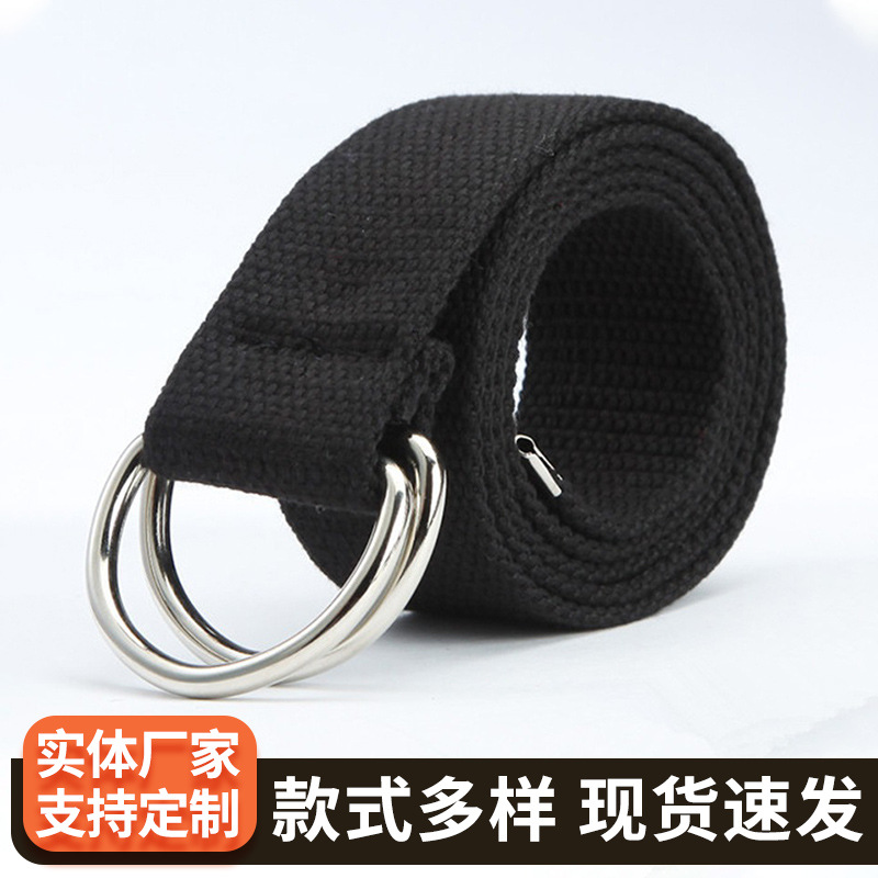 新款百搭潮新款休闲韩版双环扣帆布腰带女男士裤腰带情侣学生皮带