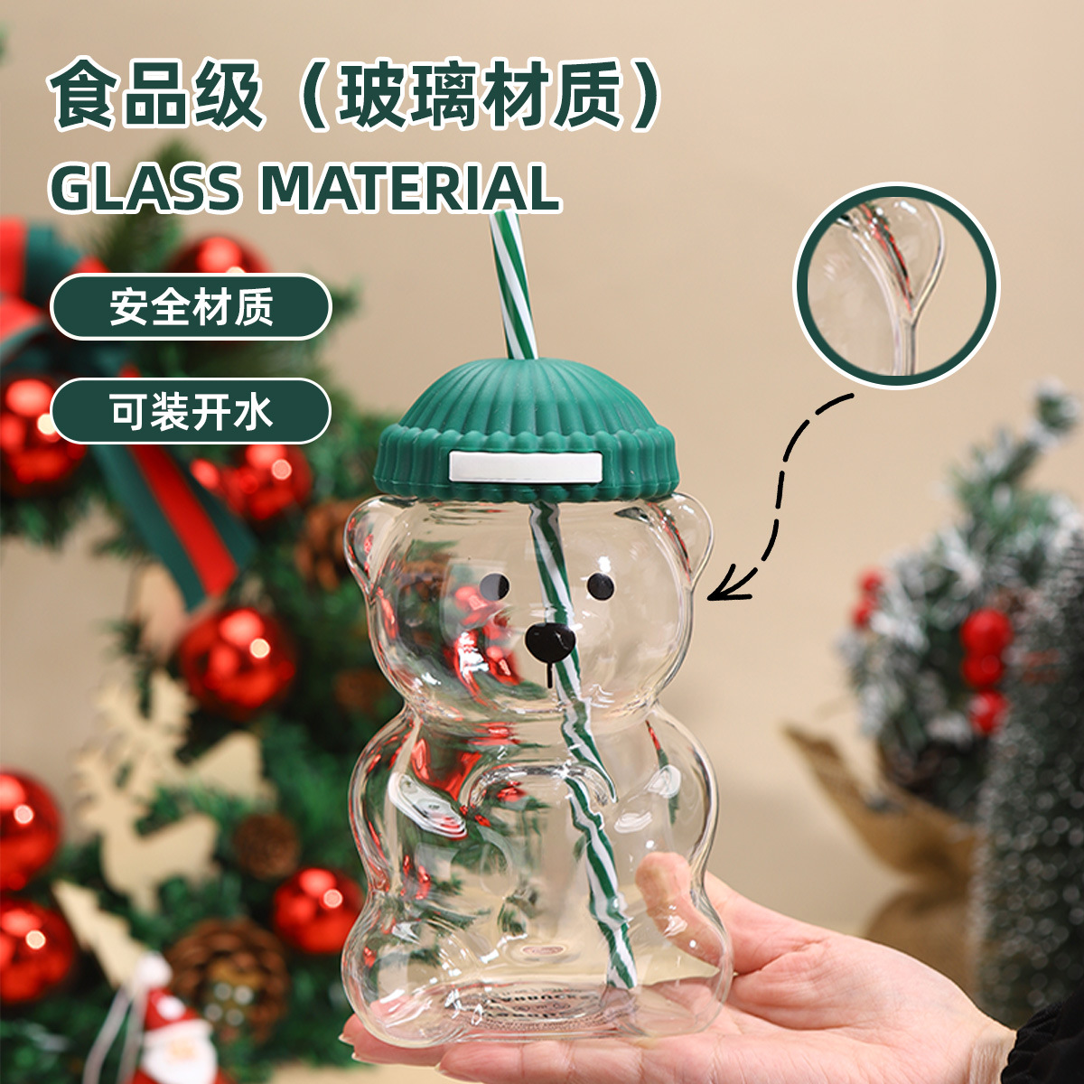 新款创意高颜值小熊玻璃杯儿童可爱卡通喝水杯便携带吸管奶茶杯