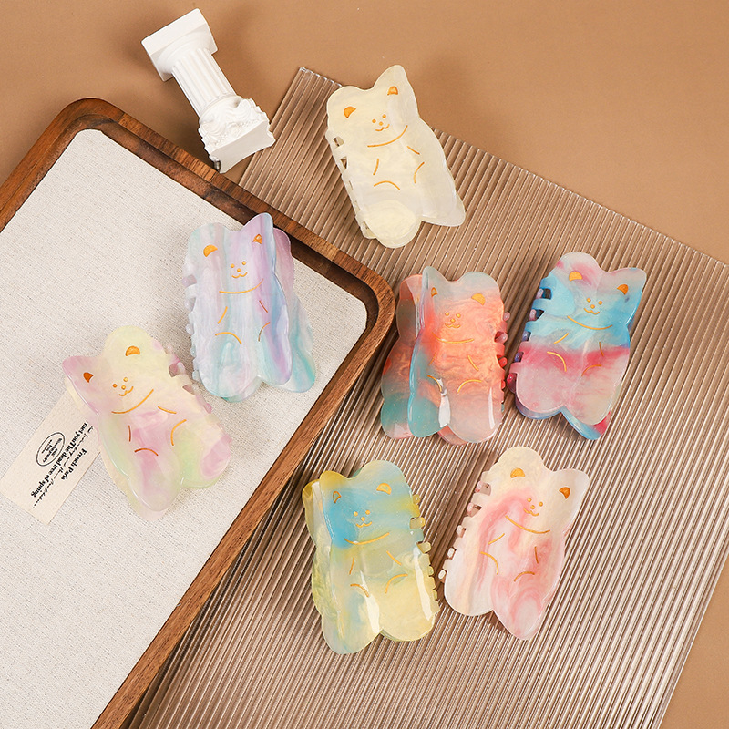 新款发夹可爱糖果小熊发卡彩虹抓夹渐变色鲨鱼动物发抓高级感发饰