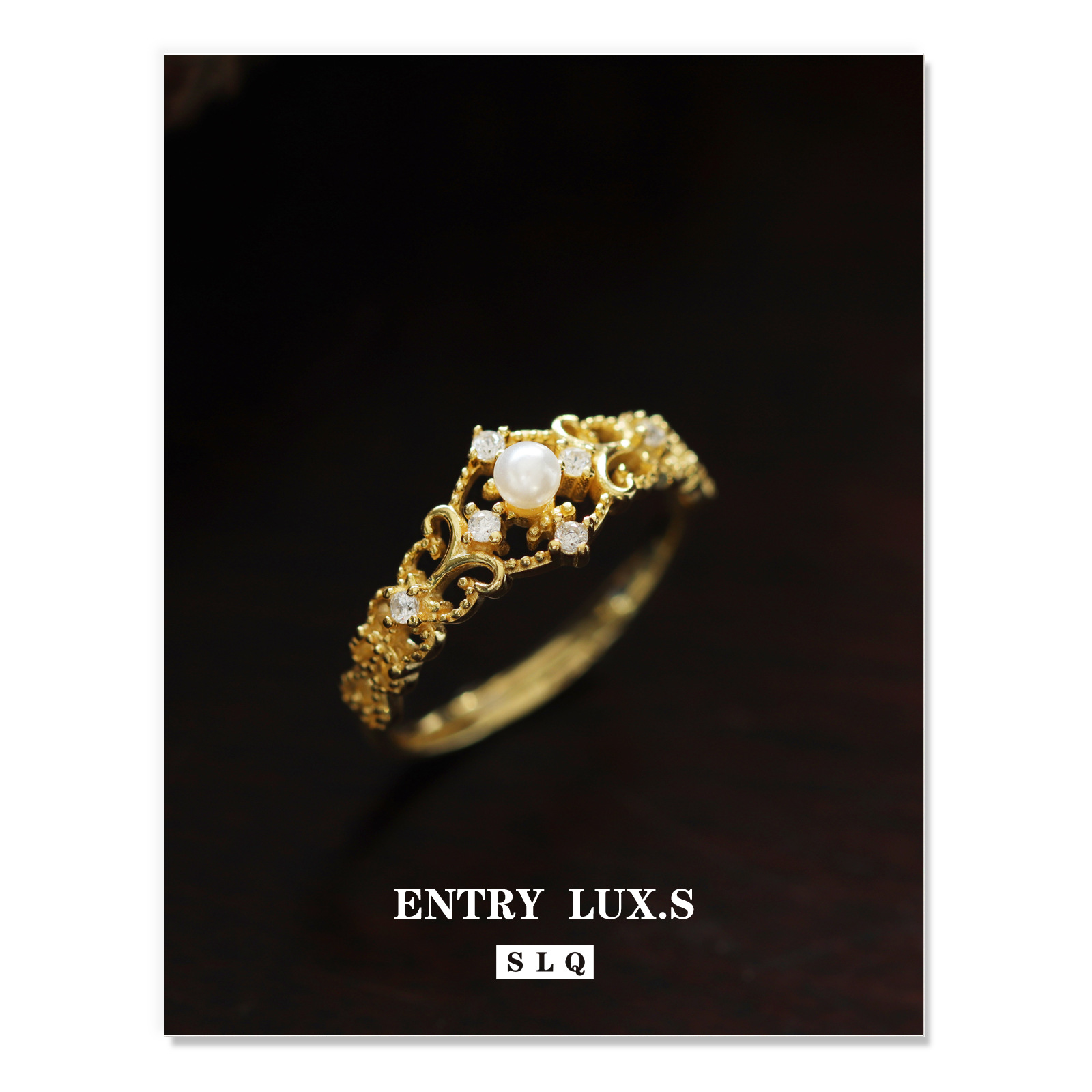 s925纯银日式轻奢镀金复古镂空天然淡水珍珠戒指女开口可调节指环