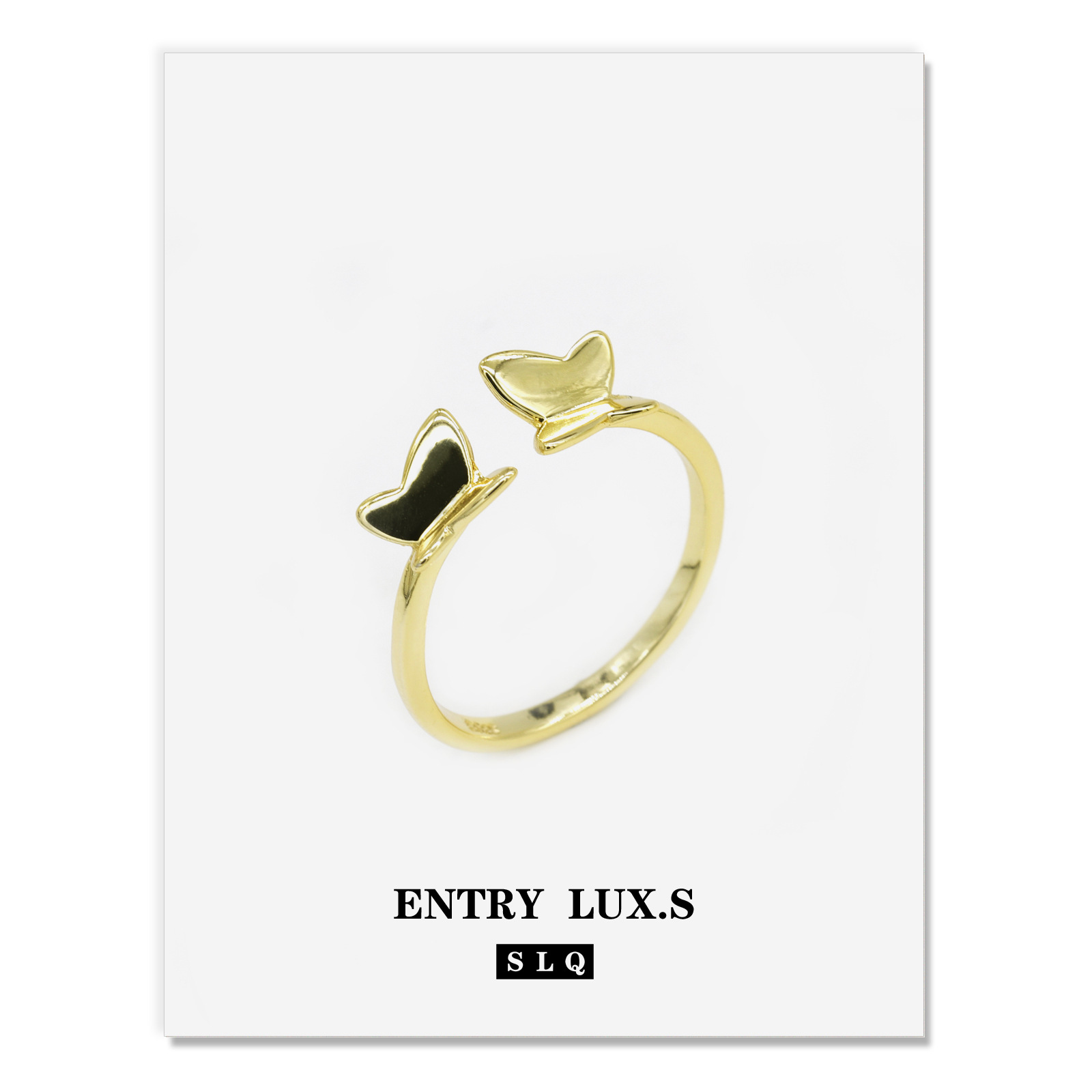 小蝴蝶可调节开口戒指女式小巧S925银食指戒复古时尚高级饰品