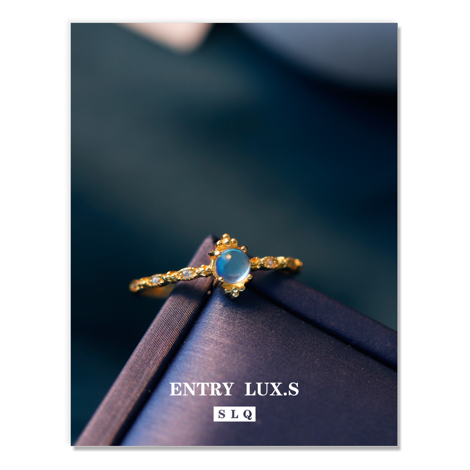 日系轻奢925银女戒梦幻蓝光月光石戒指复古精致食指开口戒ins戒指