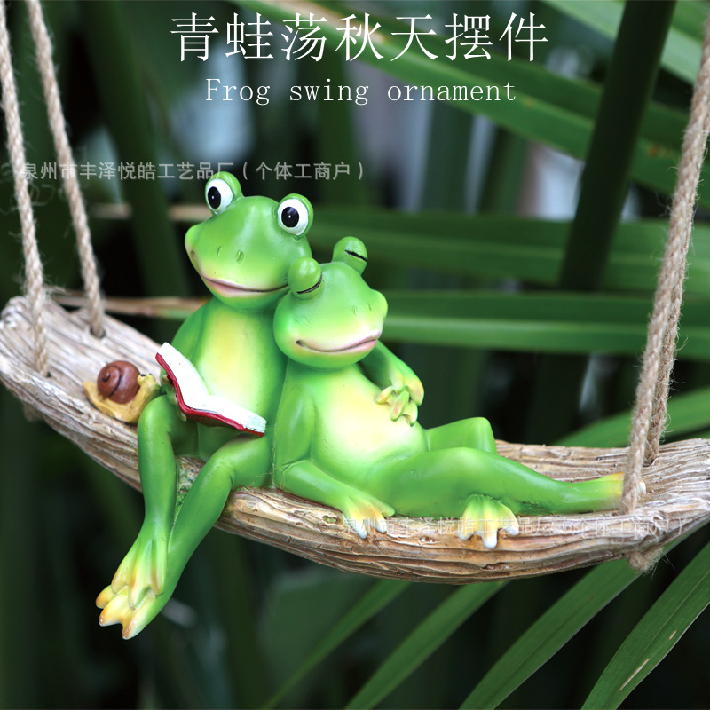 跨境庭院盆边缘悬挂摆件装饰创意卡通青蛙创意户外动物树脂工艺品