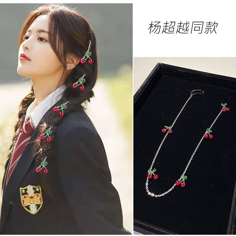 杨超越同款樱桃编发链发饰夏发夹超仙发卡链条发梳发带女绑发头饰
