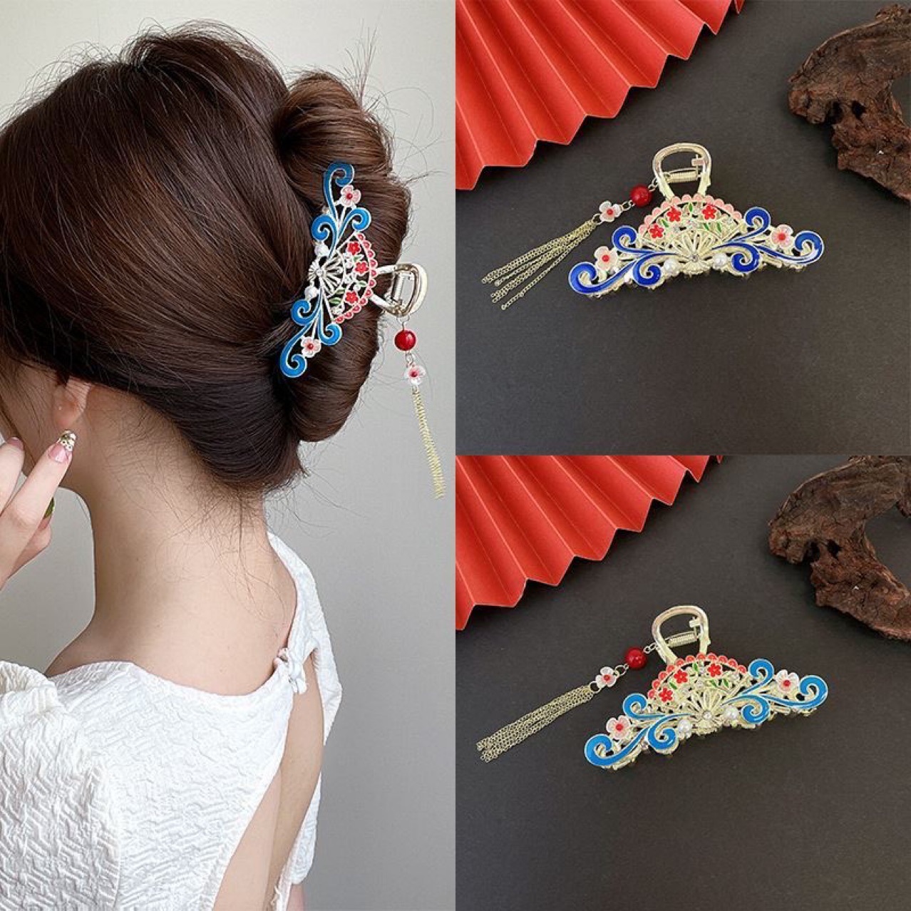 中国风祥云扇子抓夹流苏发抓气质发夹宫廷汉服发饰后脑勺鲨鱼夹女