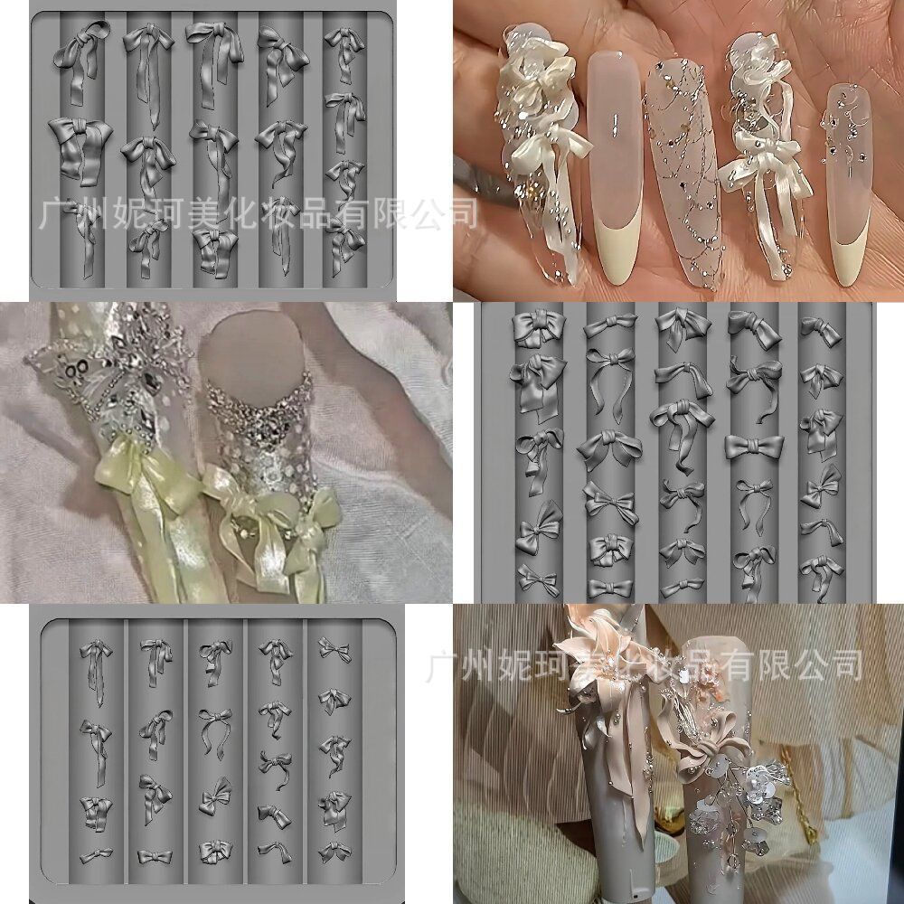 美甲新款易脱模硅胶磨具百搭手雕蝴蝶结美甲模具DIY立体高透模具