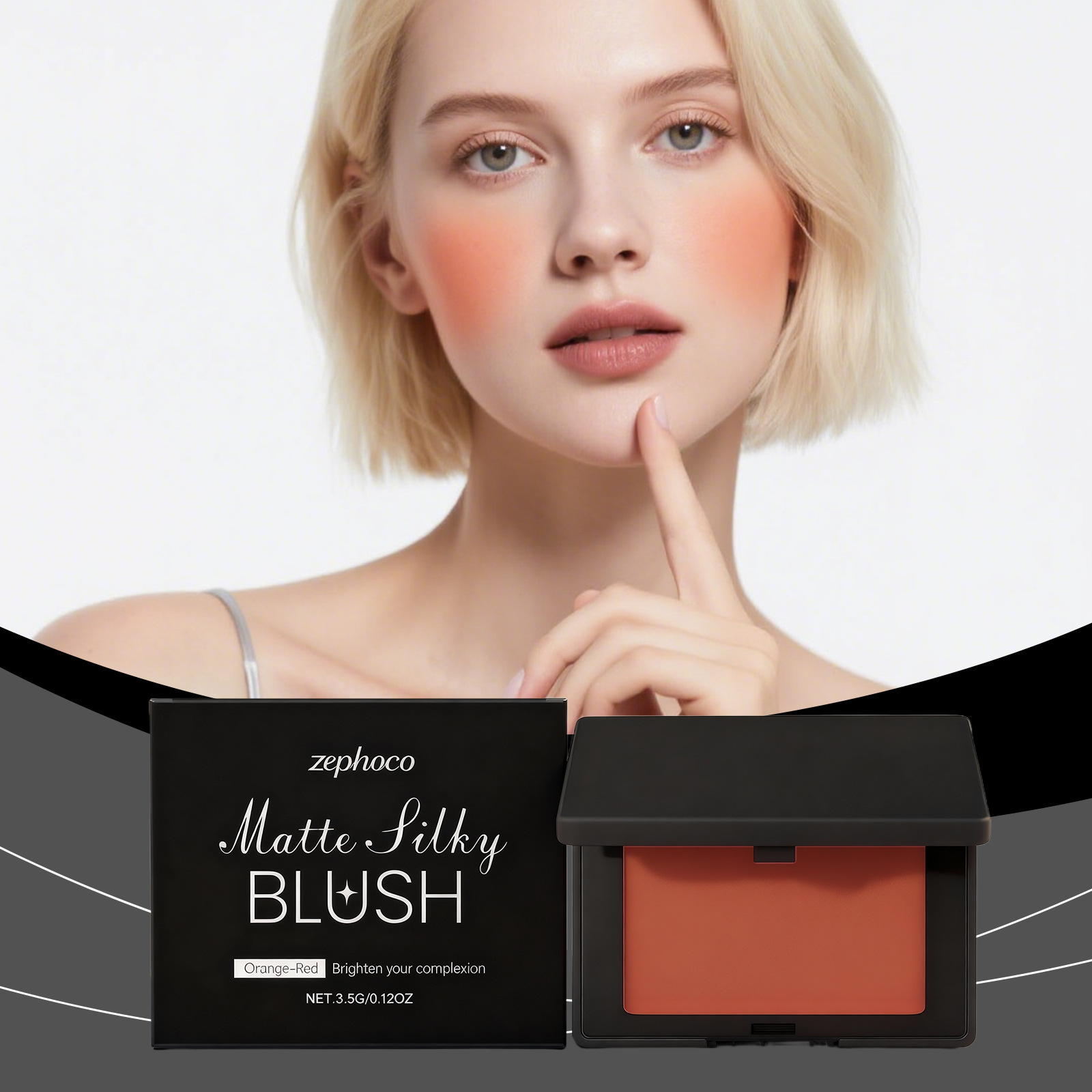 zephoco 哑光丝滑腮红 便携长效妆感自然细腻贴合肤质单色腮红盘