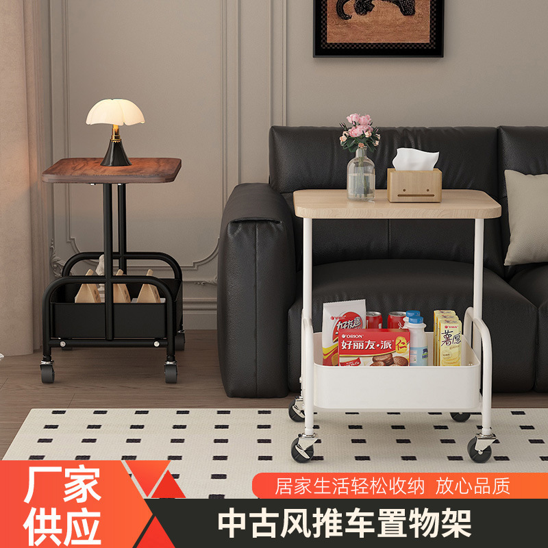 中古风小户型推车边几边柜简约卧室零食收纳可移动带单桌板置物架