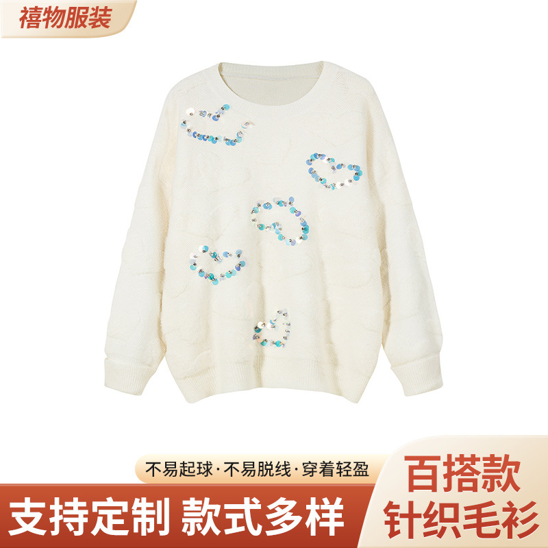 圆领毛衣女秋冬新款加厚温柔减龄奶fufu宽松慵懒风套头打底针织衫