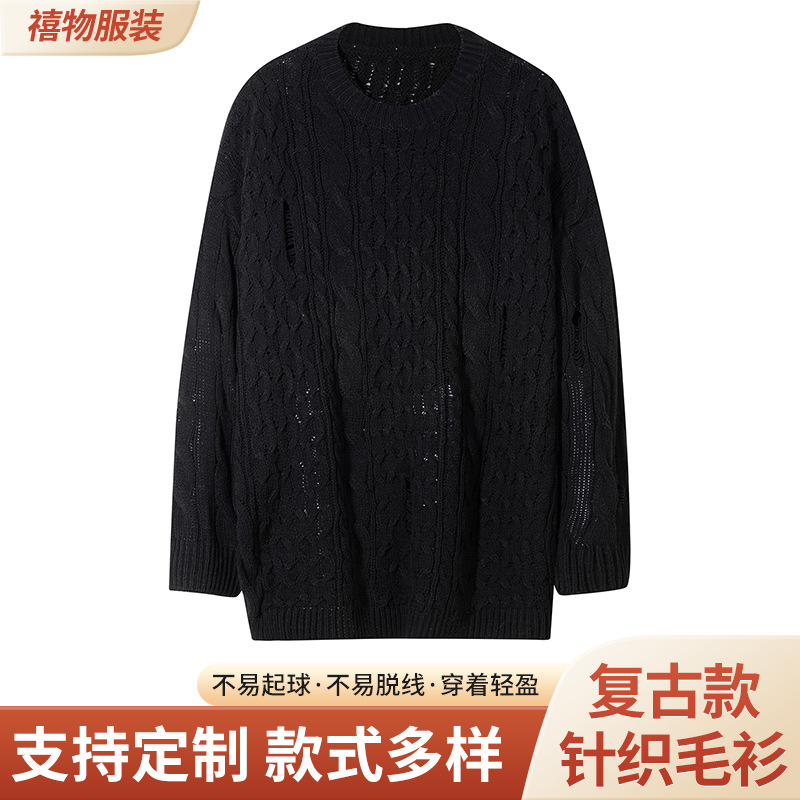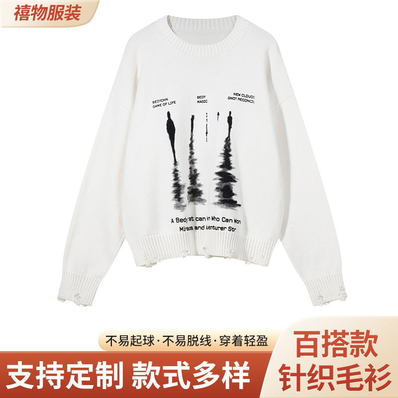 潮牌美式重磅字母长袖毛衣暗黑风男宽松内搭打底衫批发