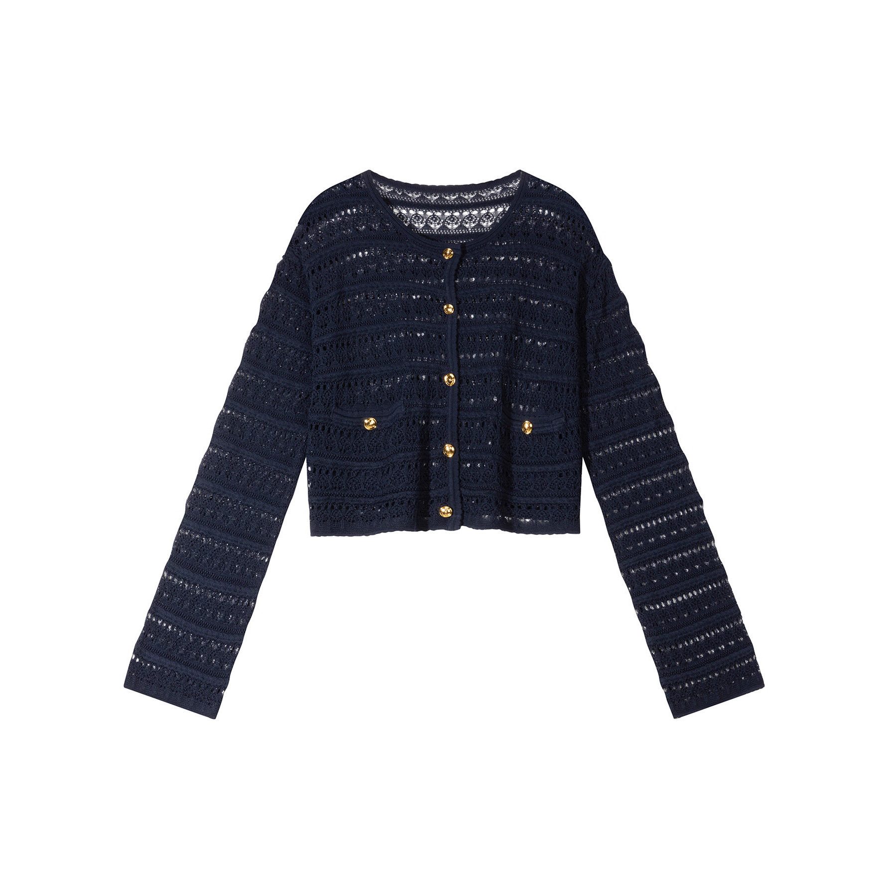 圆领小香风时尚镂空钩花气质百搭针织长袖开衫女上衣外套