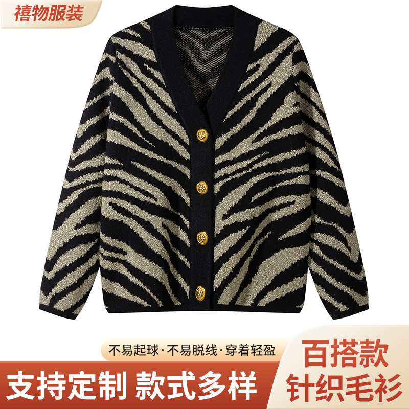 日系温柔慵懒风斑马纹开衫毛衣女条纹撞色宽松韩版显瘦长袖针织衫