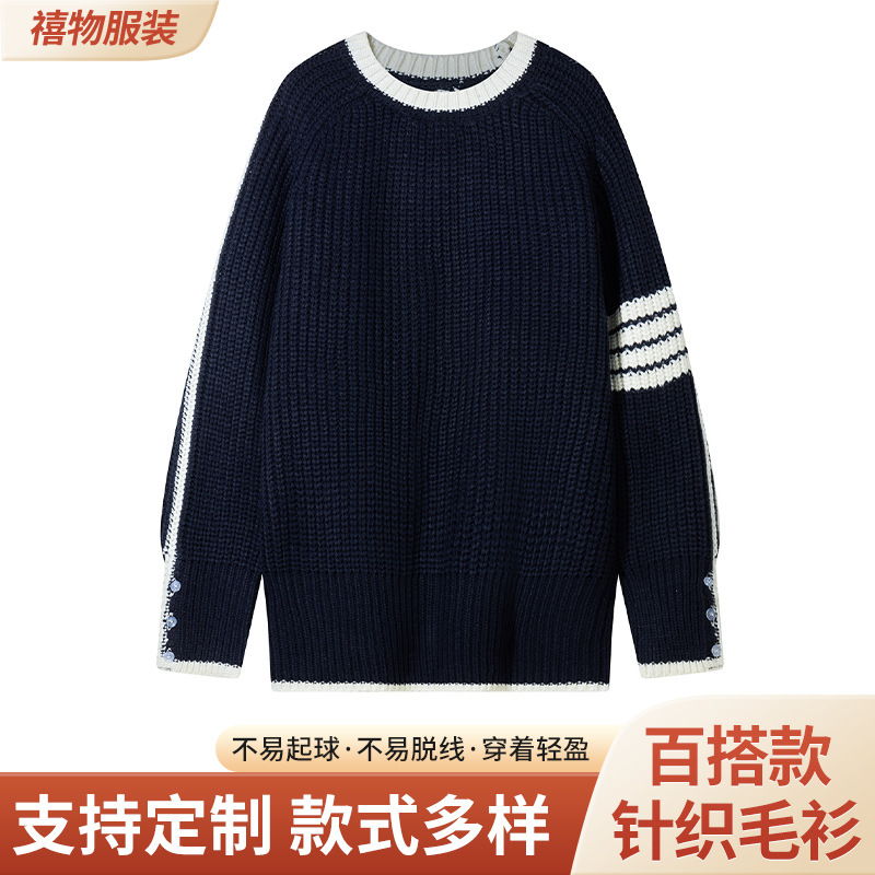 毛衣四道杆红白蓝粗针粗线白边圆领开衫针织衫毛衣外套男女毛衣