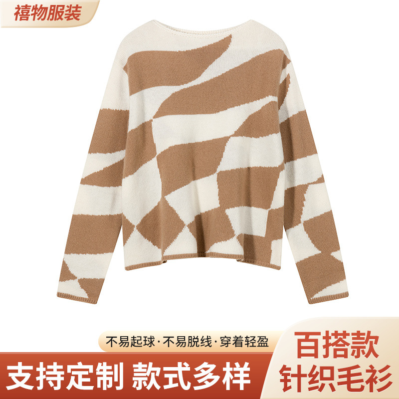 圆领毛衣2025年冬季新款慵懒风宽松外穿毛衣格子套头针织衫上衣
