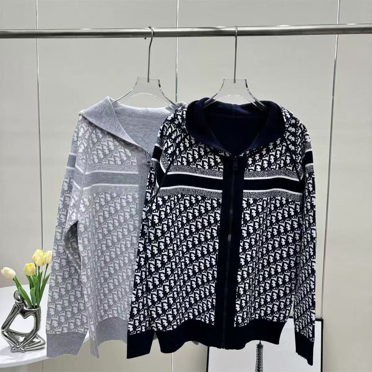 一件代发现货D家高版本2025秋冬双面穿老花字母开衫外套男女同款