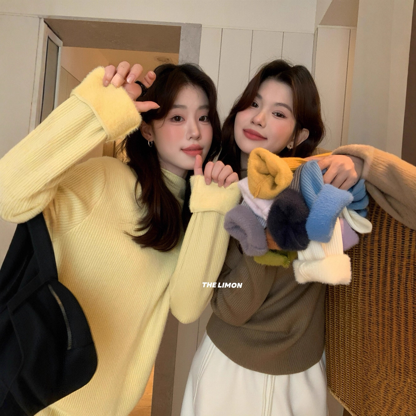 秋冬韩系简约风百搭冬季半高领一体绒自发热纯色外穿内搭针织衫女