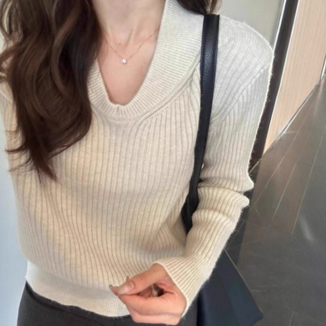 秋季ootd穿搭V领针织打底衫女内搭秋冬高级感可外穿加厚韩系上衣