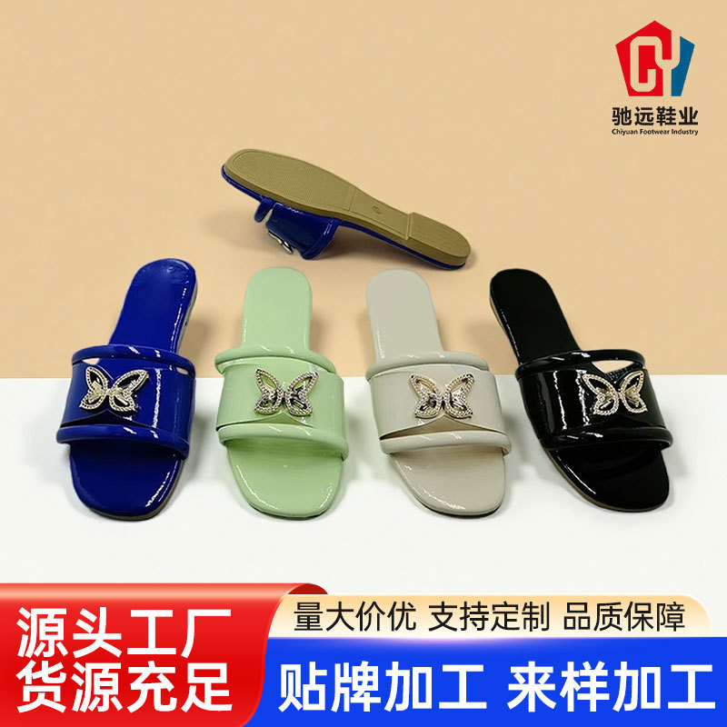 Fashion Slippers外贸工厂女鞋夏季新款时尚平底蝴蝶结女拖鞋潮州