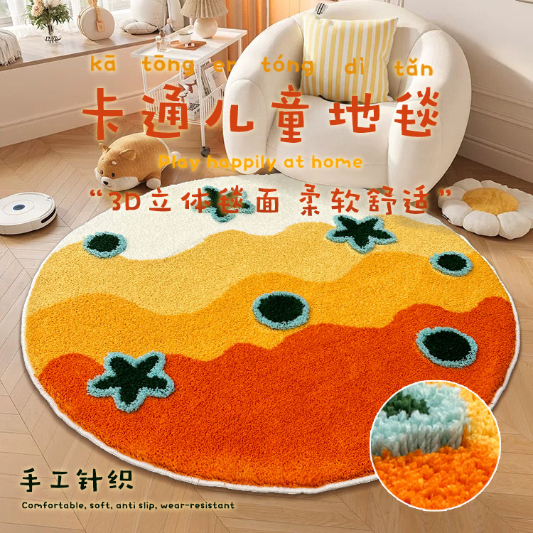多巴胺儿童房客厅地垫圆形可爱卧室凹凸植绒地毯加厚可水洗床边毯