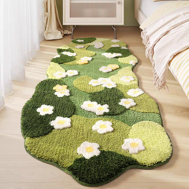 小清新植绒苔藓地毯卧室床边毯耐脏易打理可机洗可折叠手工地毯