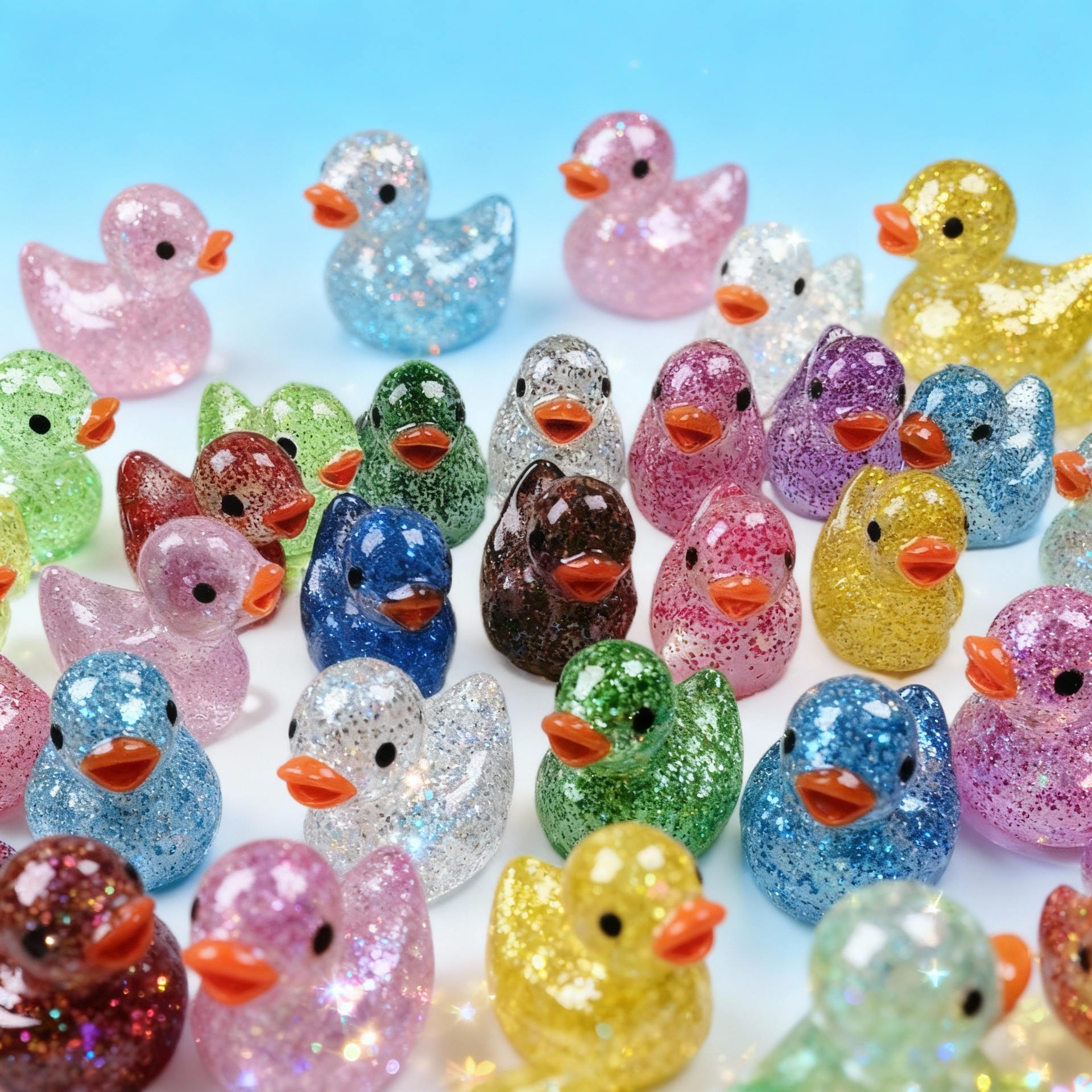 跨境立体夜光细闪小鸭子12色可爱动物树脂小摆件diy饰品发饰配件