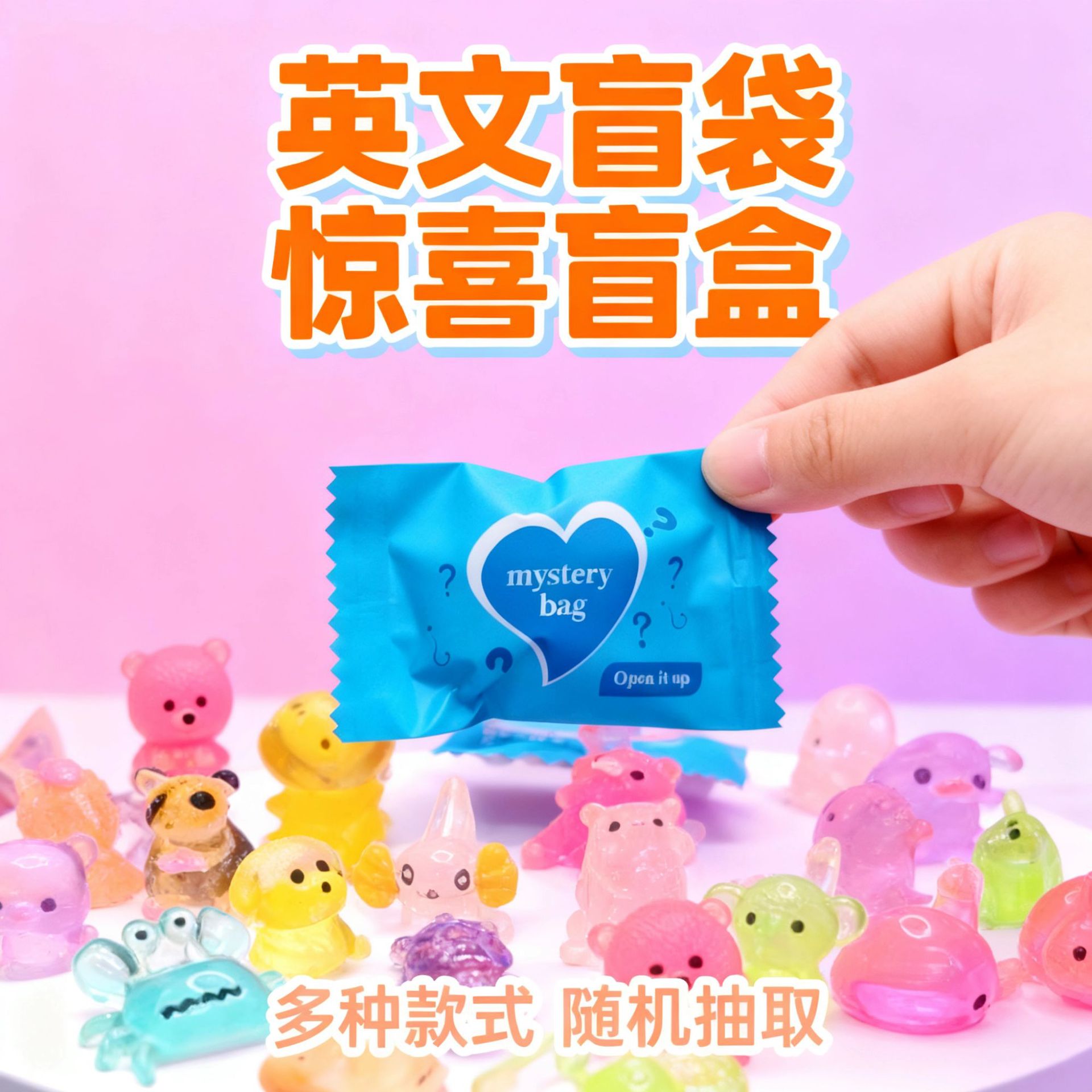 跨境英文盲袋夜光小动物混款发光玩具微缩小摆件diy树脂小配件