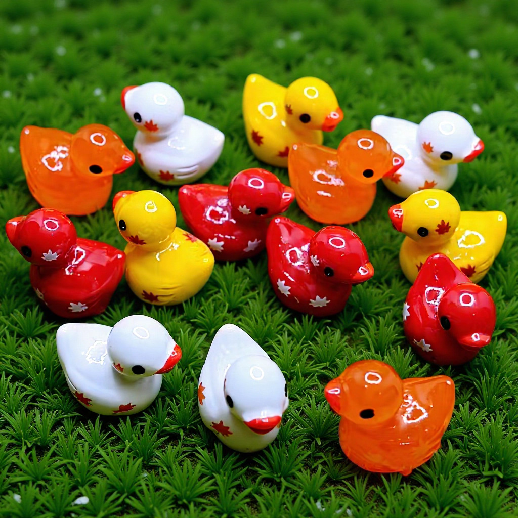 跨境创意迷你枫叶小鸭子公仔DIY装饰品配件微景观树脂小摆件批发
