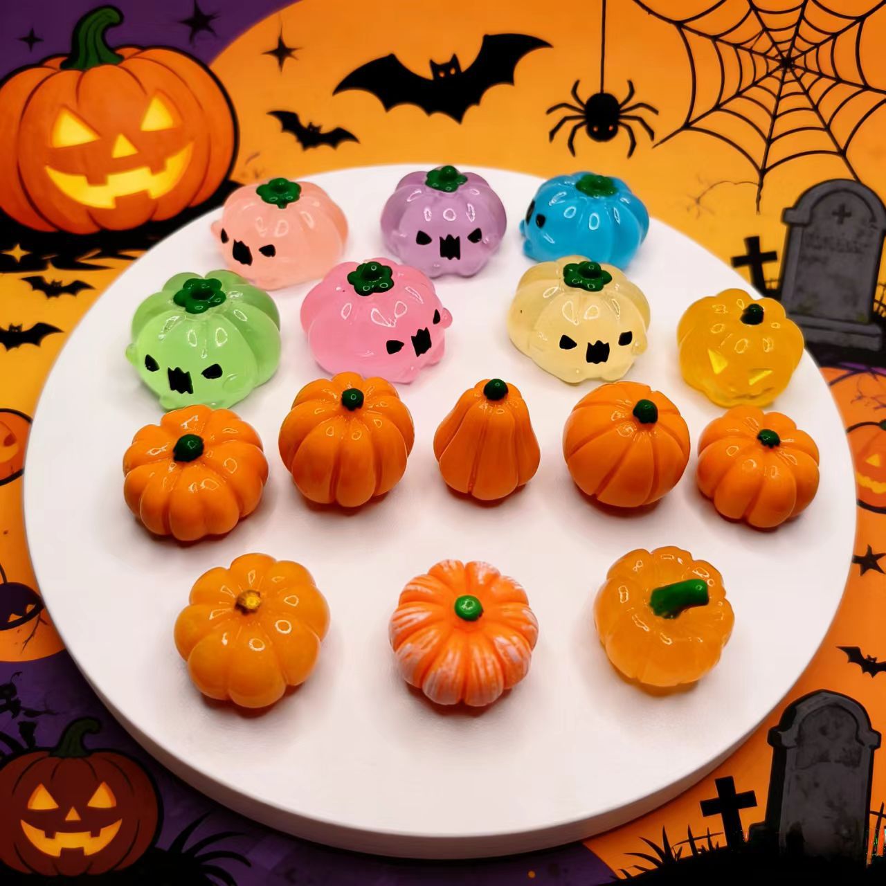 万圣节装饰布置材料恶魔南瓜树脂小摆件夜光南瓜玉米DIY饰品配件