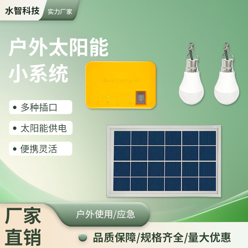 新款户外太阳能小系统灯家用应急野外露营夜市电池板便携式LED灯
