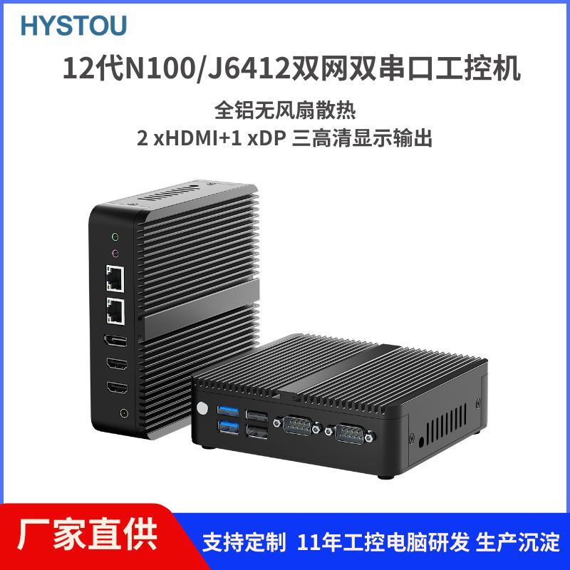 双网J6412三显12代微型工业N100低功耗软路由迷你工控电脑小主机