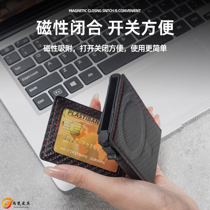 跨境热销自动式铝合金RFID卡套男士碳纤维卡包零钱夹信用卡收纳盒