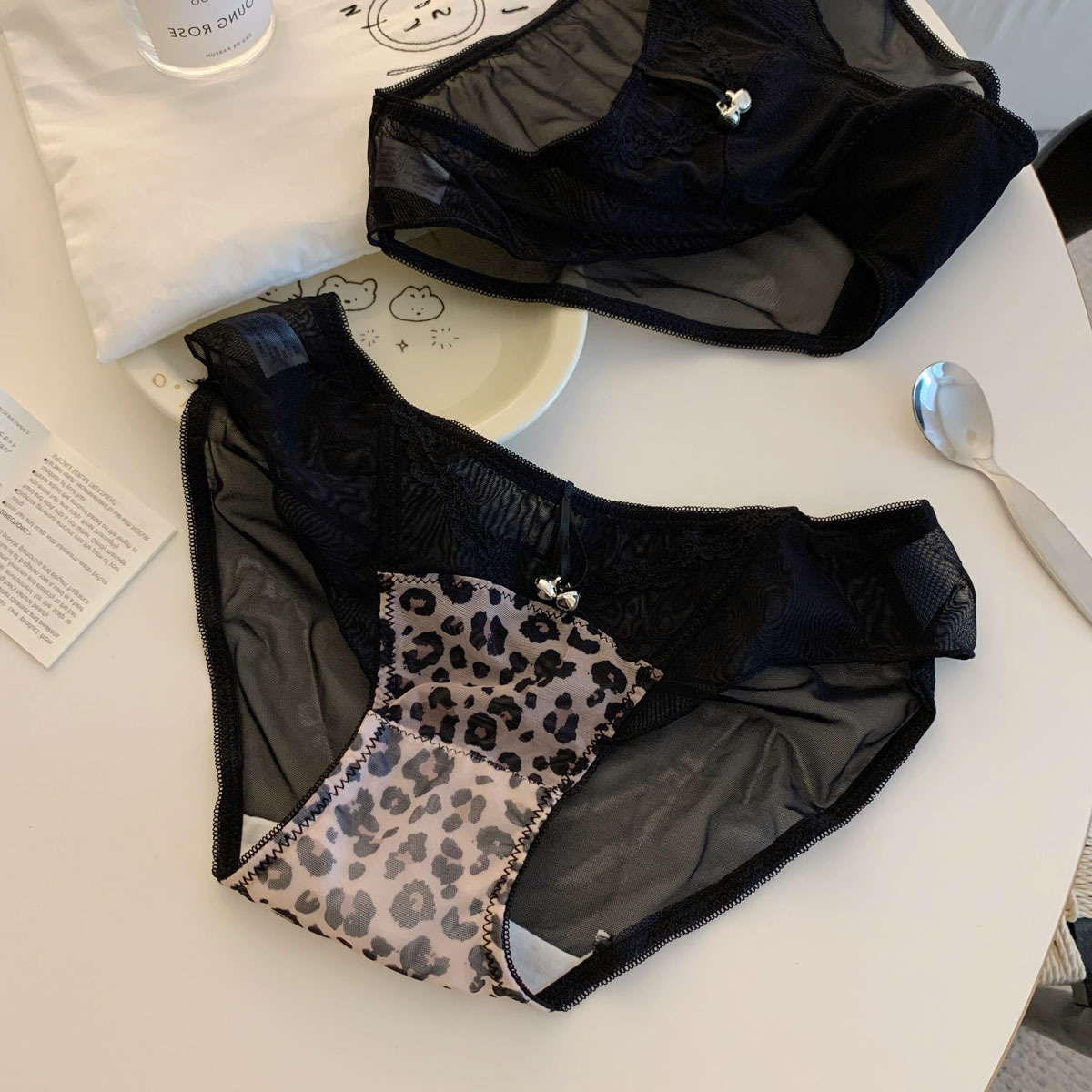 野性绽放*新款铃铛气质豹纹甜辣系蕾丝内裤女性感女式三角裤低腰