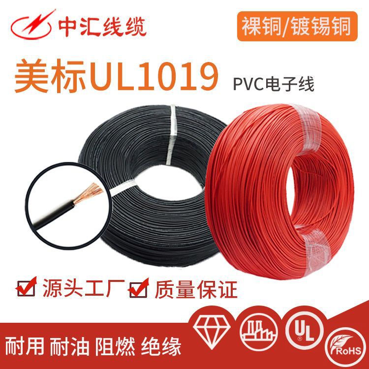 美标线UL1019电子连接线厂家供应镀锡铜单芯线PVC绝缘600V电子线