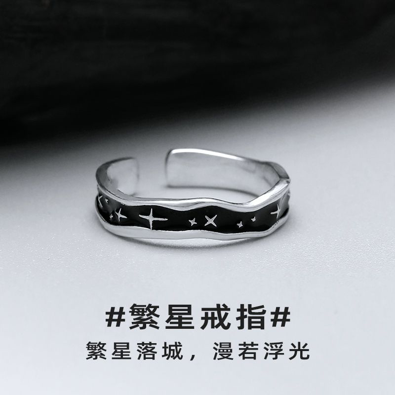 日韩925镀银繁星戒指男款小众高级感开口滴胶指环男女生情侣简约