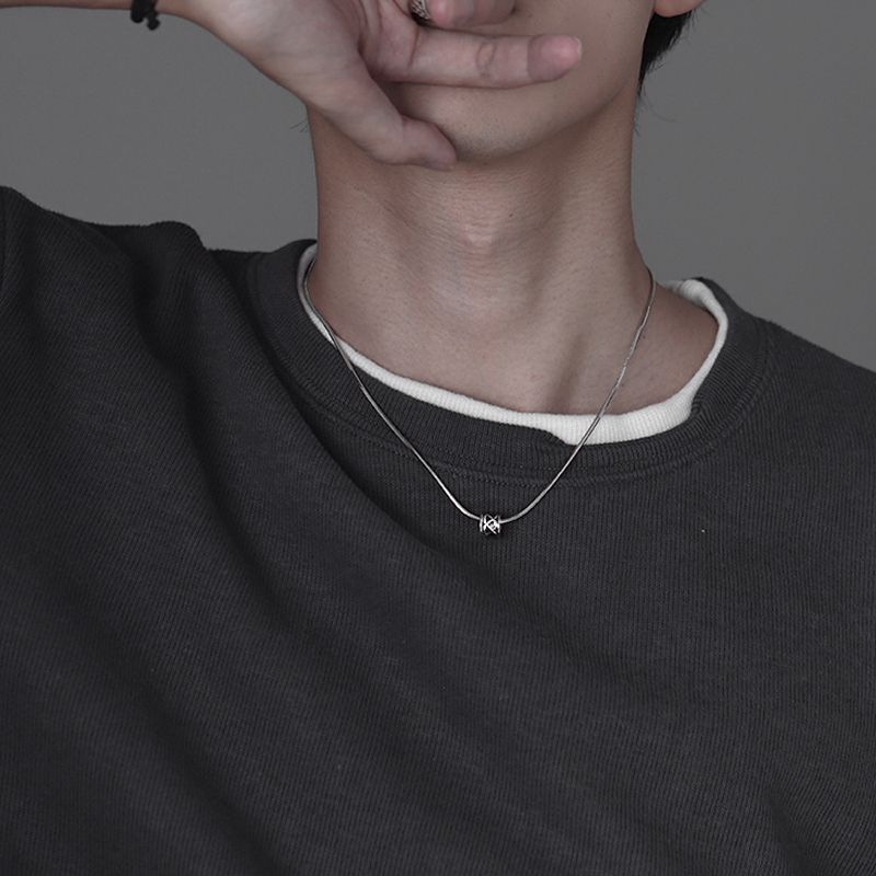 项链男潮小众蛇骨链小蛮腰颈链简约男士复古做旧吊坠学生镀银链子