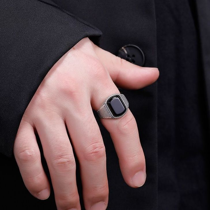 复古戒指男潮流个性男款开口指环仿黑玛瑙小众高级感个性简约韩版