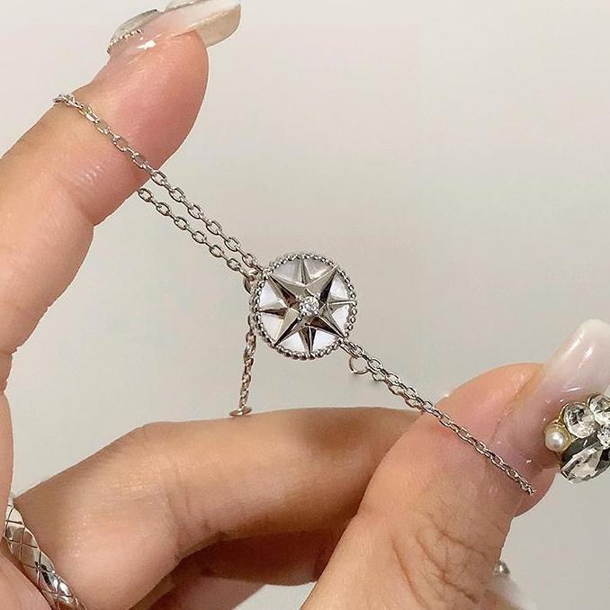 八芒星罗盘镀银手链女设计感独特百搭时尚白贝母吊坠潮冷淡风手饰