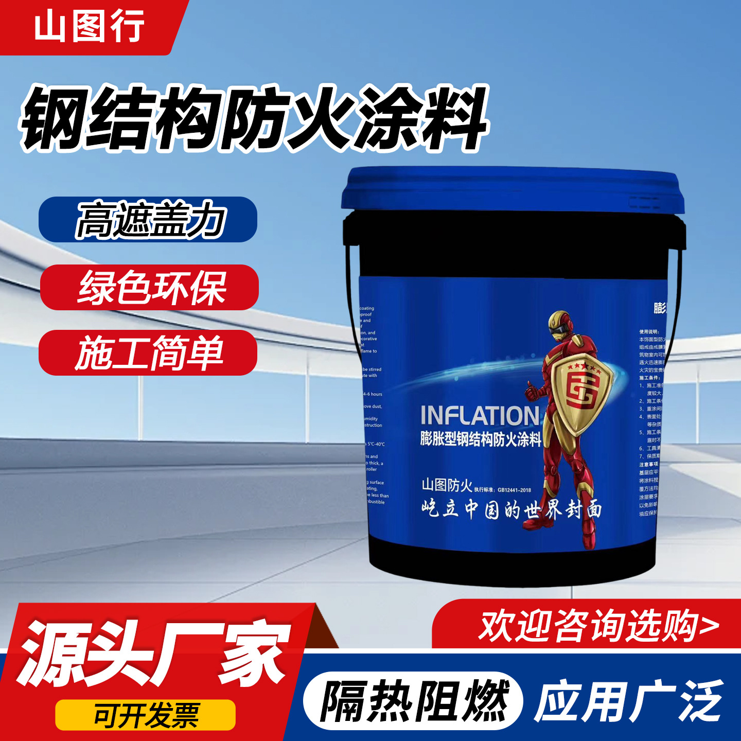 厂家直销室内外膨胀性涂料薄型水性耐高温钢结构防火涂料