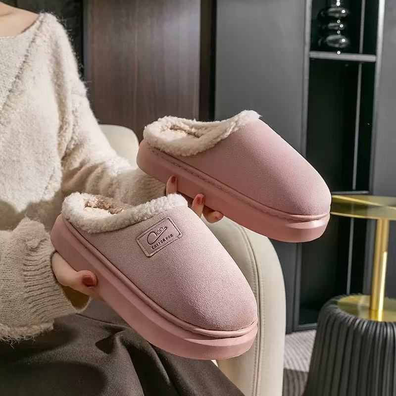 冬季毛绒棉拖鞋女居家防滑加绒厚底保暖不冻脚情侣高级感月子棉鞋