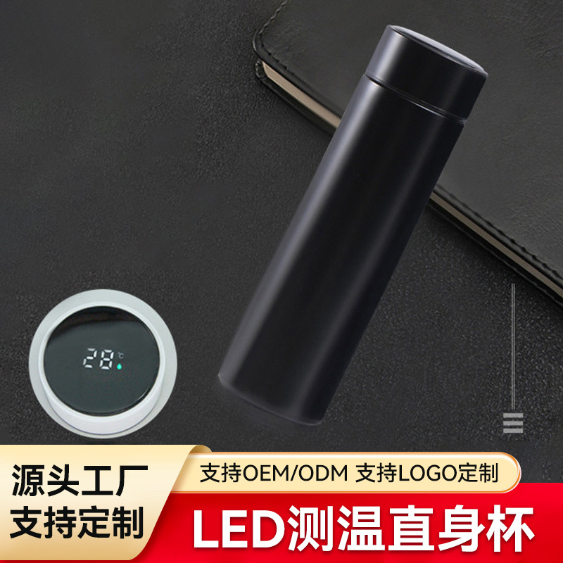 智能数显304不锈钢保温杯创意LED测温直身杯便携商务办公礼品杯