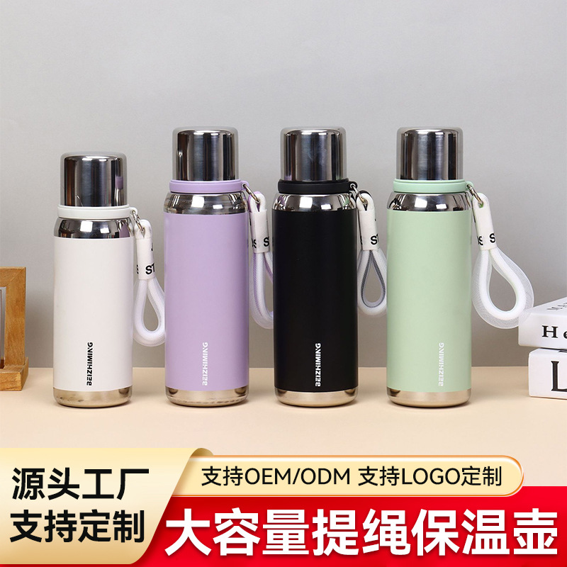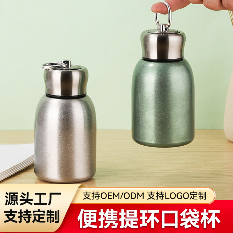 新款316不锈钢真空水杯保温杯全钢盖迷你吨壶时尚提绳便携口袋