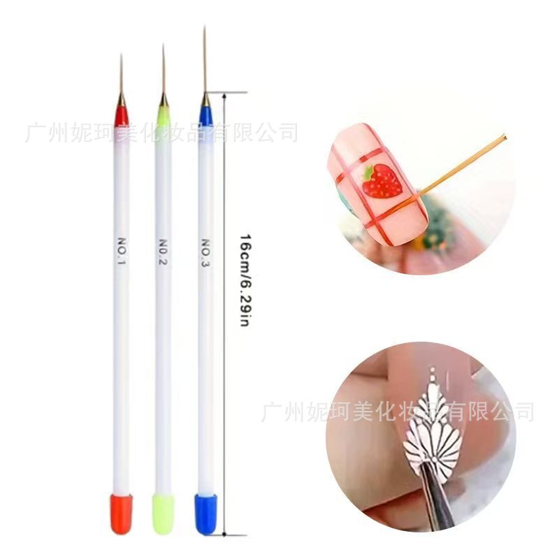 产地货源 塑料杆美甲拉线笔极细超细批发美甲3支勾线笔美甲笔现货