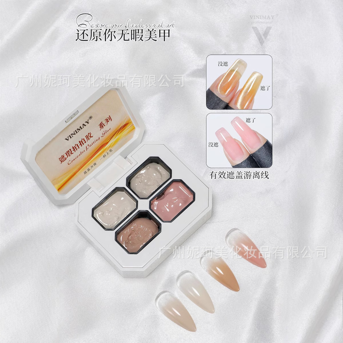 四色拍拍胶VINIMAY新款4宫格固态甲油胶渐变晕染拍拍胶遮瑕光疗胶