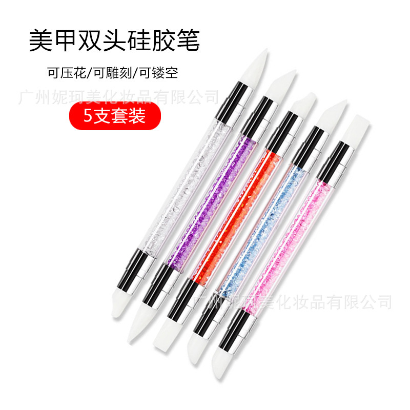 美甲工具软硅胶笔天使凿锲型画笔多功能按压贴纸蹭粉硅胶笔软双头