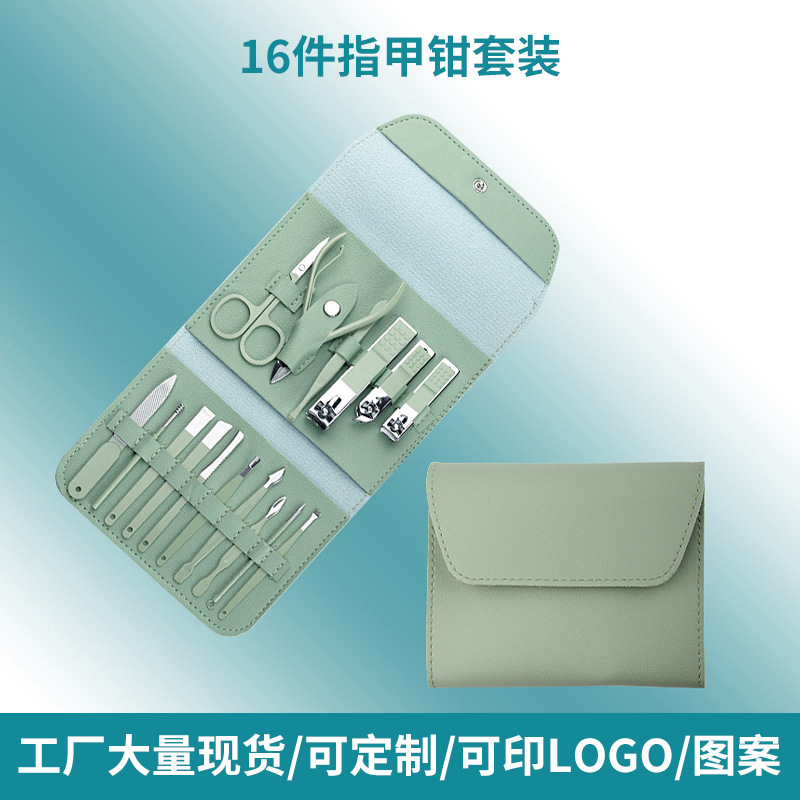 现货美容钳美甲修甲刀修甲工具不锈钢16件套美甲美容套装可印LOGO