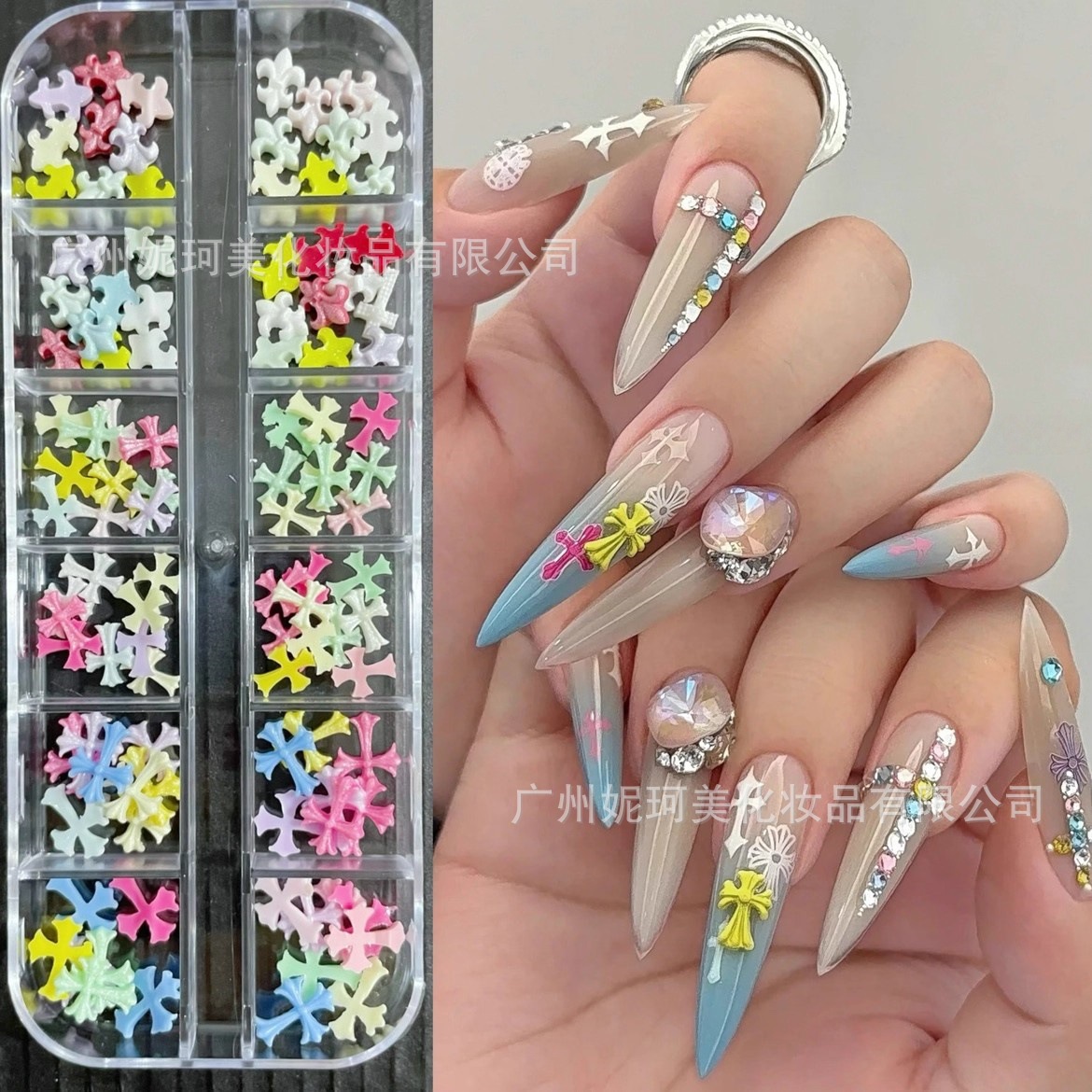 多巴胺彩色克罗十字架美甲小饰品网红爆款穿戴甲光疗甲配饰钻工具