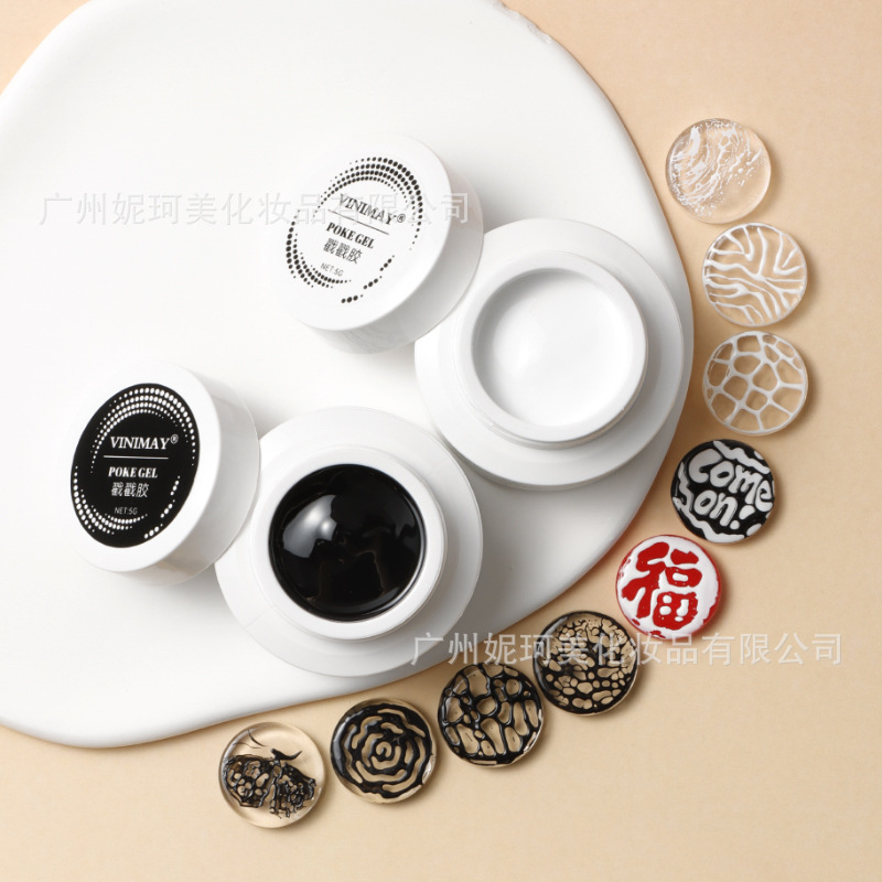 新款美甲戳戳胶黑白色甲油胶美甲彩绘洞洞胶海浪胶蕾丝胶纹理胶