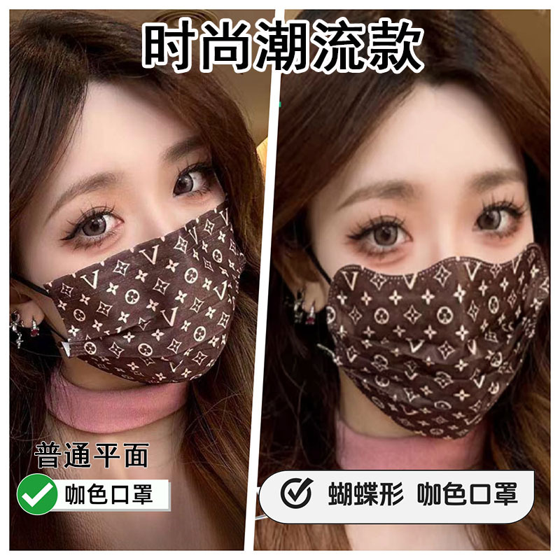 网红防护口罩女高颜值新款一次性咖色口罩潮牌时尚印花潮款独立装