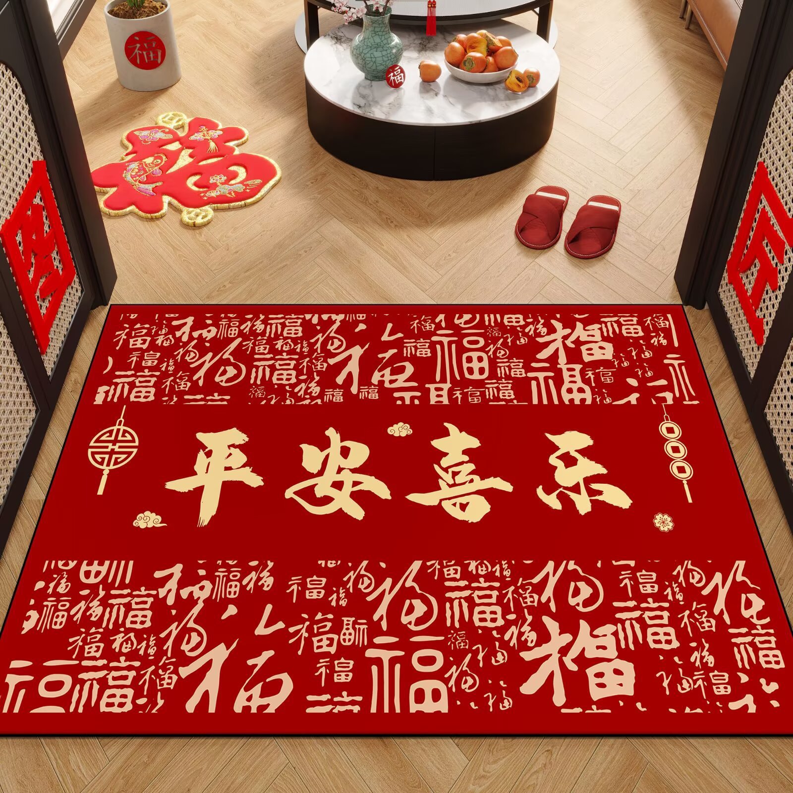 过年专用门垫家用马年玄关脚垫耐脏吸水防滑水晶绒红门垫可代发