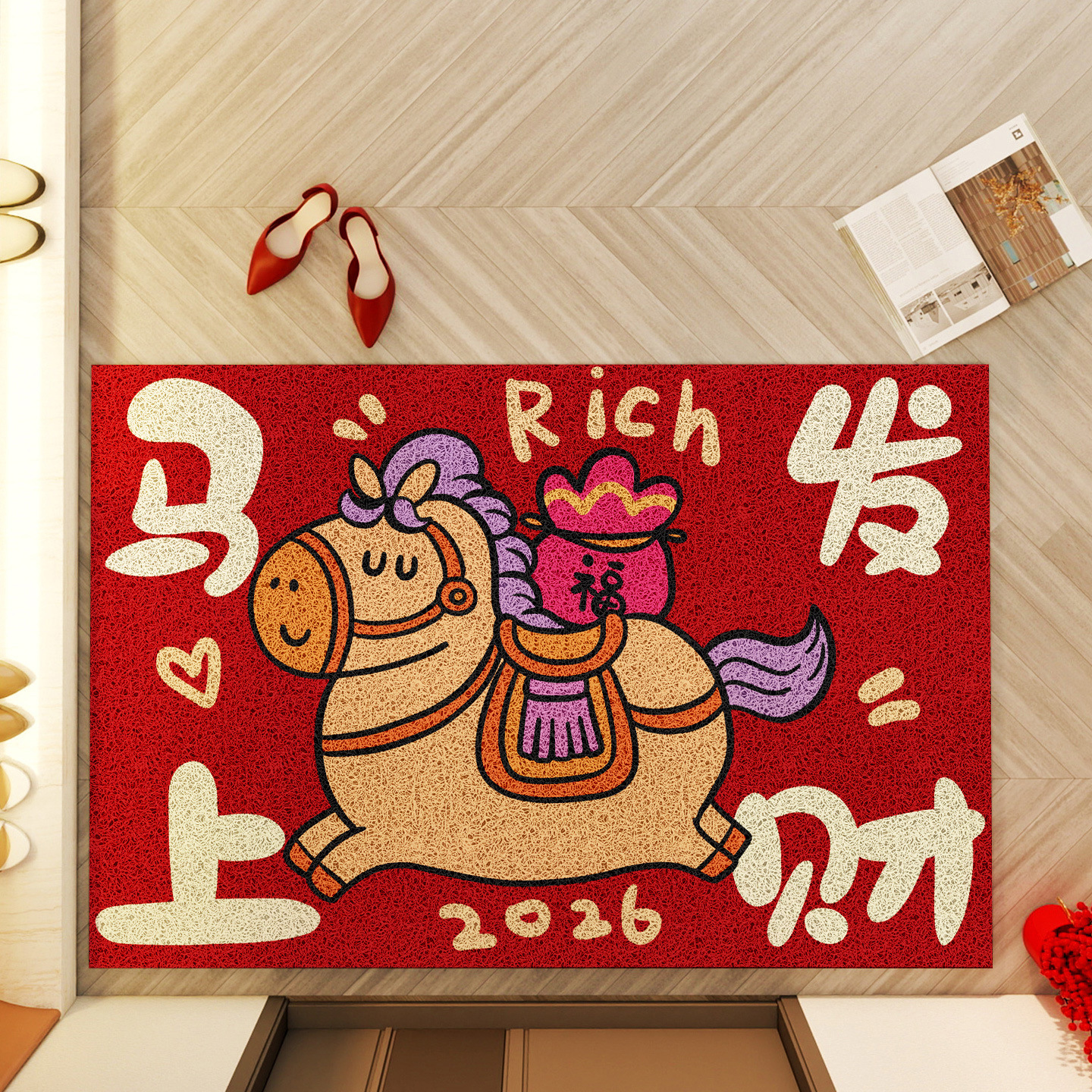 马年丝圈门垫2026新款家用高弹丝圈脚垫蹭土防尘防滑地垫可代发